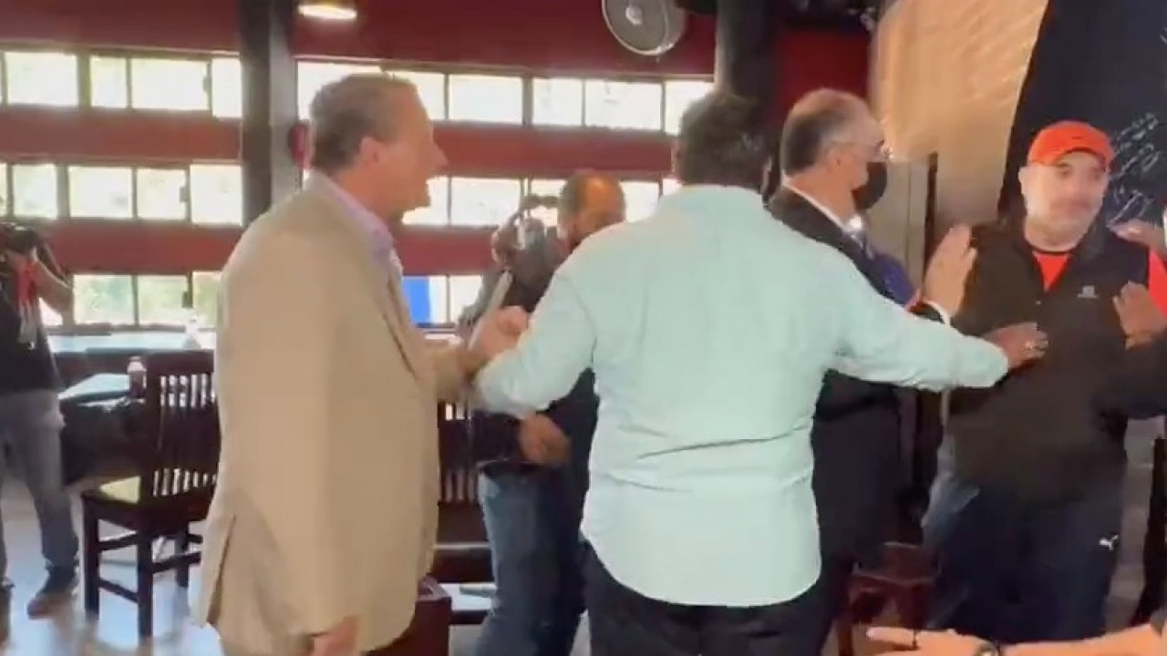 Luego de confrontaciones, el actor se levantó para agredir al representante legal, pero los asistentes lo impidieron.