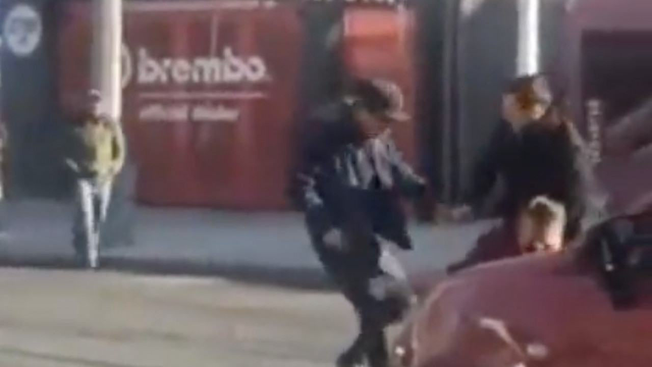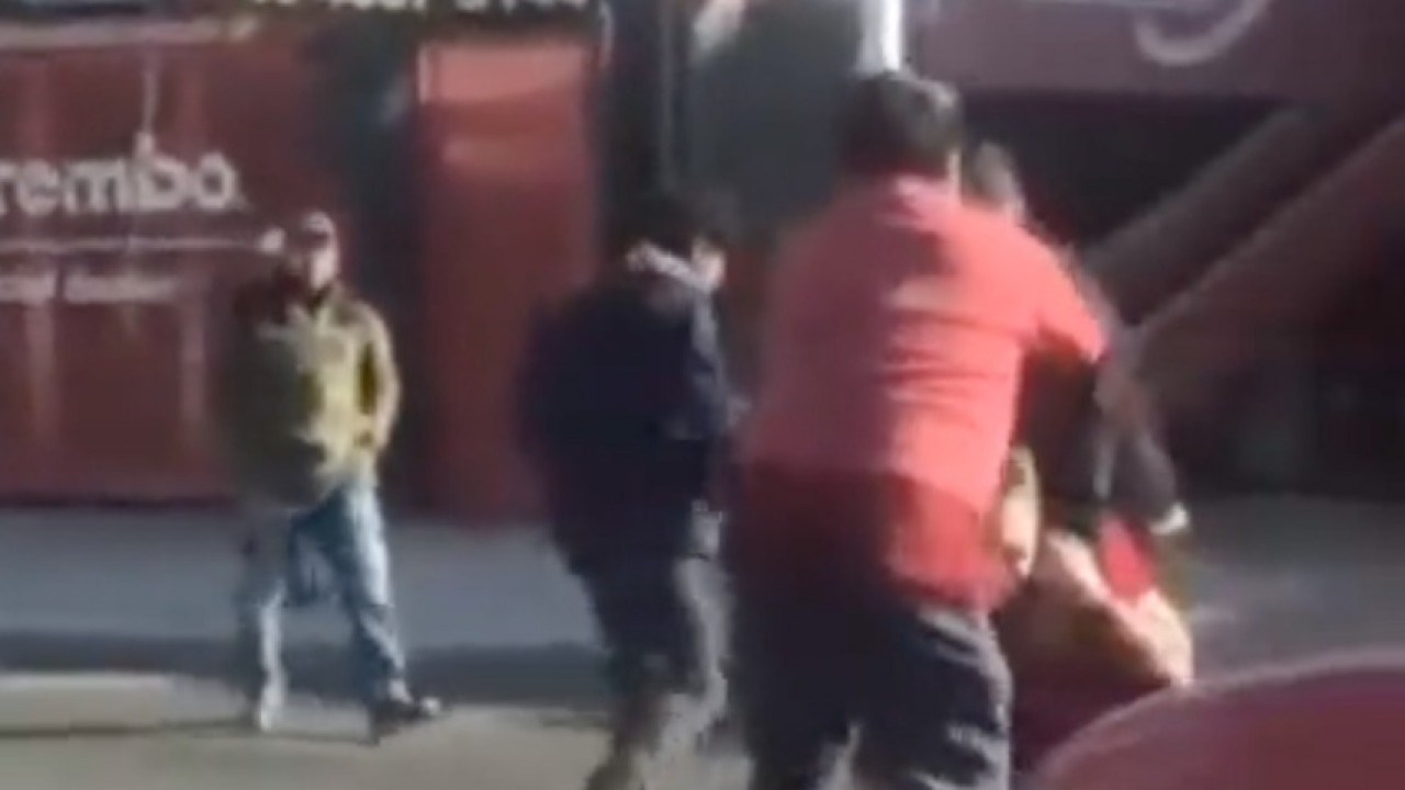 La riña, que duró unos segundos, mantuvo parado el tránsito vehicular y los automovilistas no dejaban de sonar el claxon.