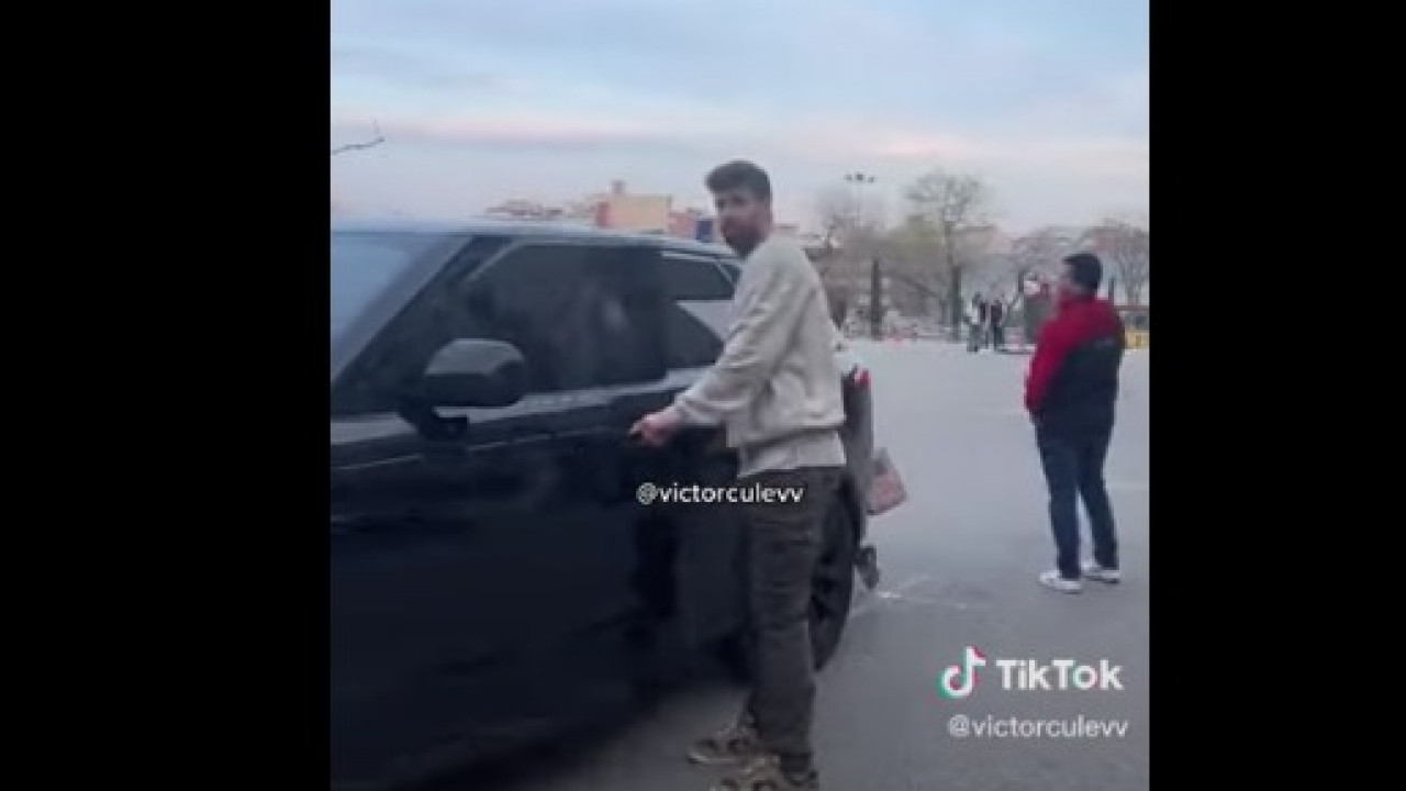 Ambos van al coche y cuando Piqué está a punto subirse mira un par de veces a alrededor, tras lo cual aparece Sasha y le abre la puerta.