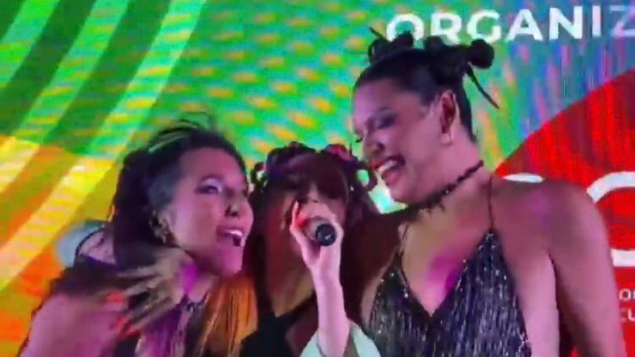 Bailaron juntas una pequeña coreografía y al término Valentina se acercó a Belinda para besarla, se dio media vuelta y se besó Lola, quien también besó a Valentina, causando ovación en el público.
