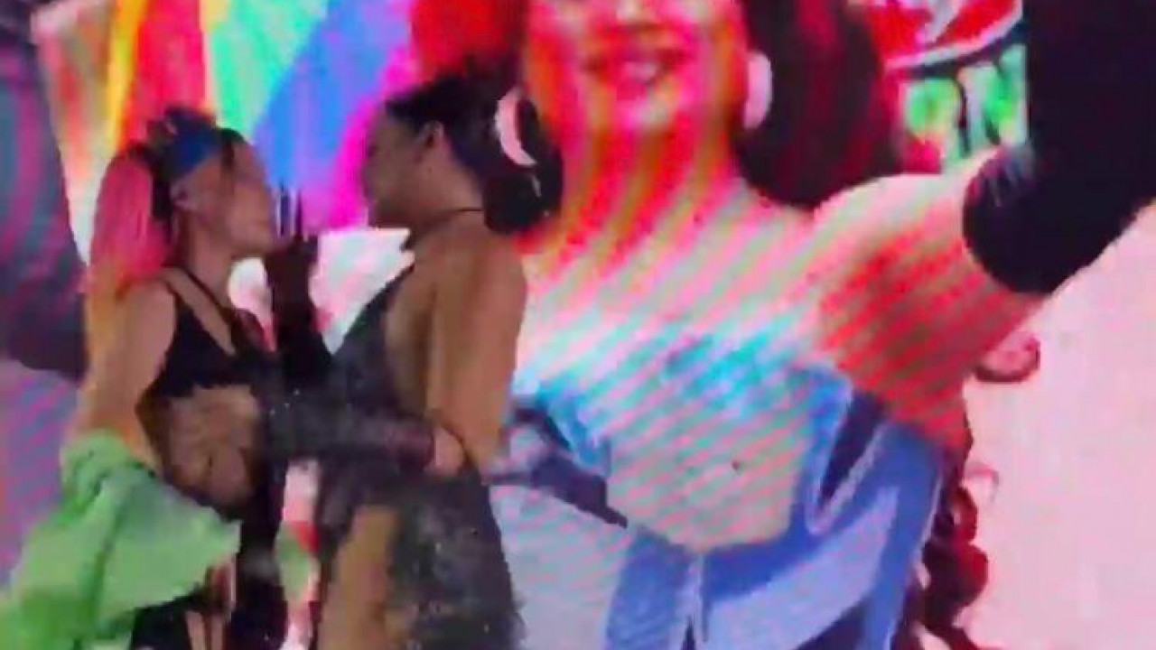 Belinda se besó con la actriz Lola Rodríguez y la drag queen Valentina, durante su presentación en el pride de Madrid, recreando el famoso beso de Madonna con Christina Aguilera y Britney Spears, en 2003.