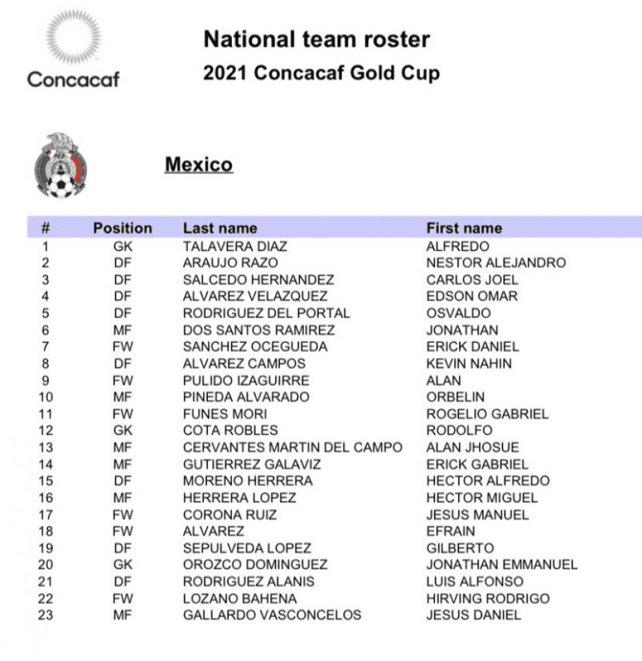 También están Kevin Álvarez (Pachuca) y Gilberto Sepúlveda (Guadalajara), así como los volantes Alan Cervantes (Santos Laguna) y Efraín Álvarez (Galaxy de Los Ángeles).