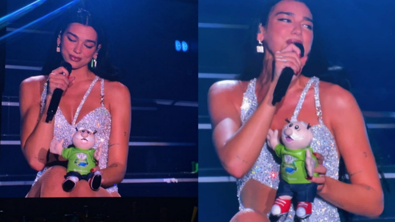 En su presentación en Monterrey, Nuevo León, la cantante Dua Lipa recibió otro famoso peluche que le arrojaron sus fanáticos, pero en esta ocasión lo abrazó y lo mantuvo durante una de sus canciones.