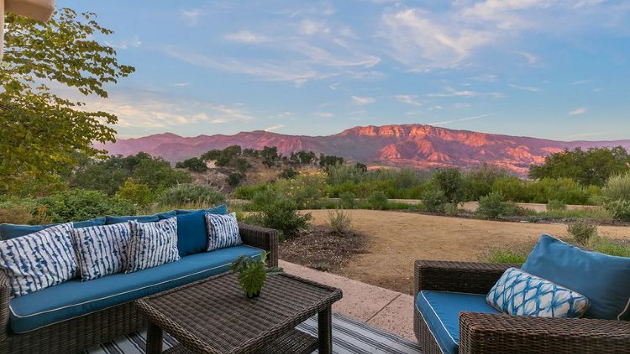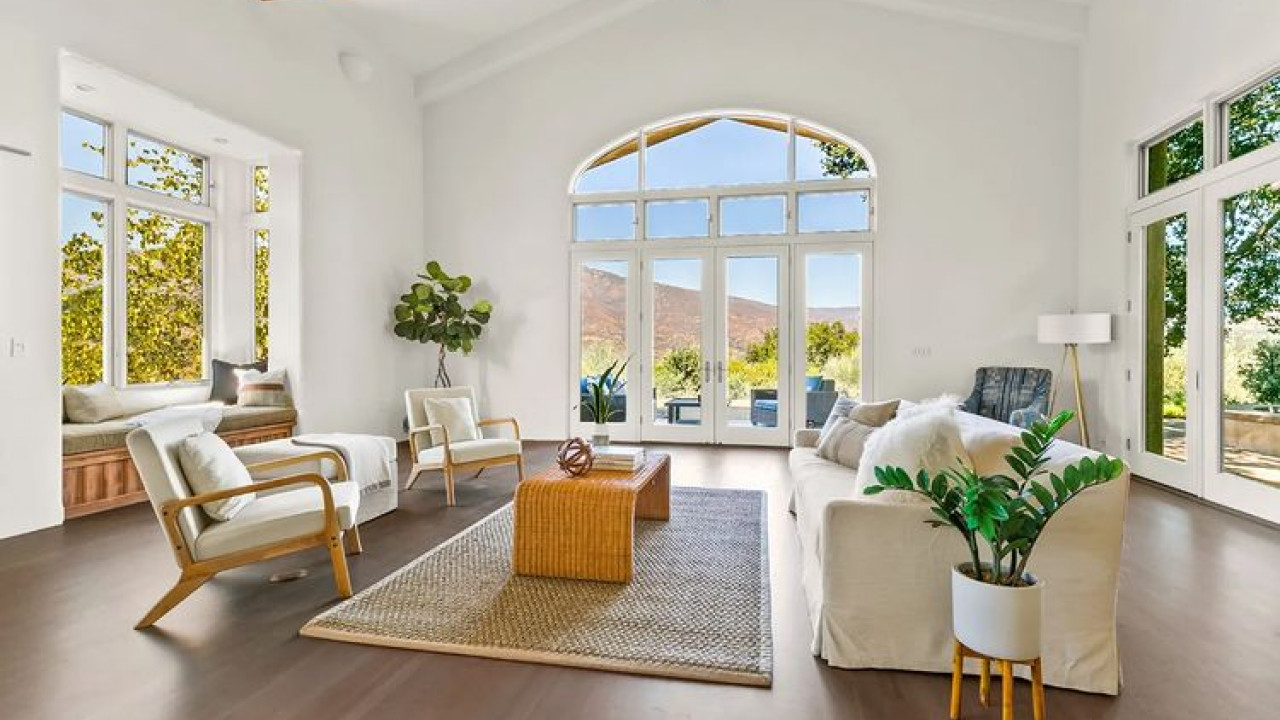 La propiedad cuenta con un terreno de seis mil 500 pies cuadrados, cuatro mil 351 pies pertenecen a la casa principal, así como una impactante vista a las montañas Topatopa. Tiene acabados rústicos, un estudio de arte y gimnasio privado.