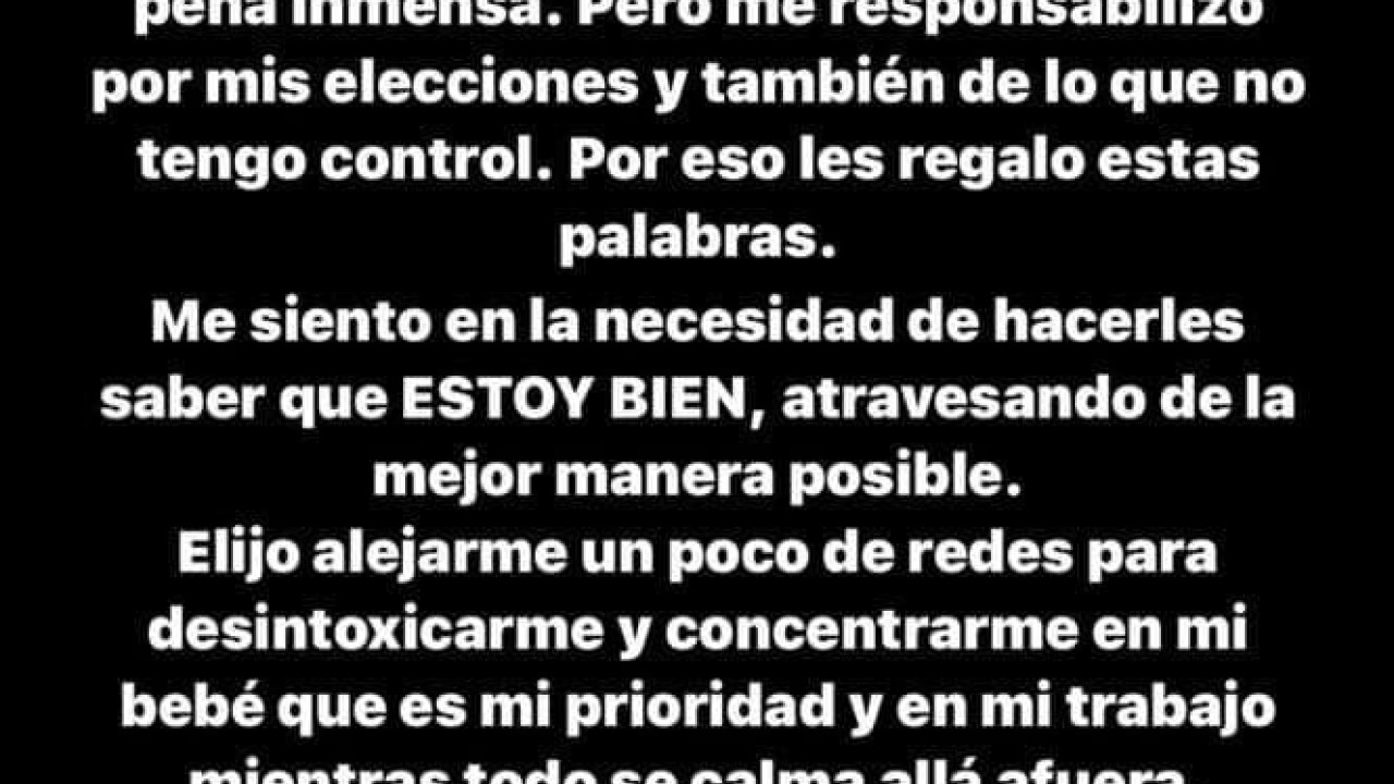 Afirmó que está bien pero que elige alejarse de las redes para desintoxicarse y concentrarse tanto en su trabajo como en su bebé que aseguró es su prioridad.