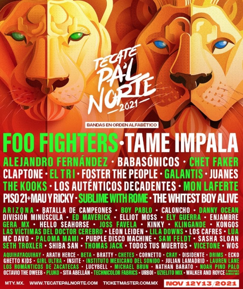 A través de sus redes sociales, los organizadores del festival de música Tecate Pa’l Norte anunciaron la lista de invitados que encabeza Foo Fighters, para este evento que se realizará el próximo 12 y 13 de noviembre en el Parque Fundidora de Monterrey, Nuevo León.