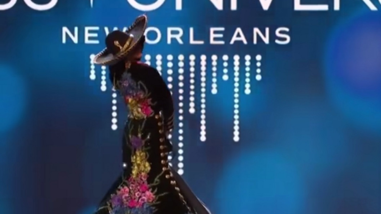 Irma Miranda homenajeó a nuestro país con el traje de charra denominado “Serenata Mexicana”, durante el desfile de trajes típicos de la gala preliminar, del popular certamen de belleza.