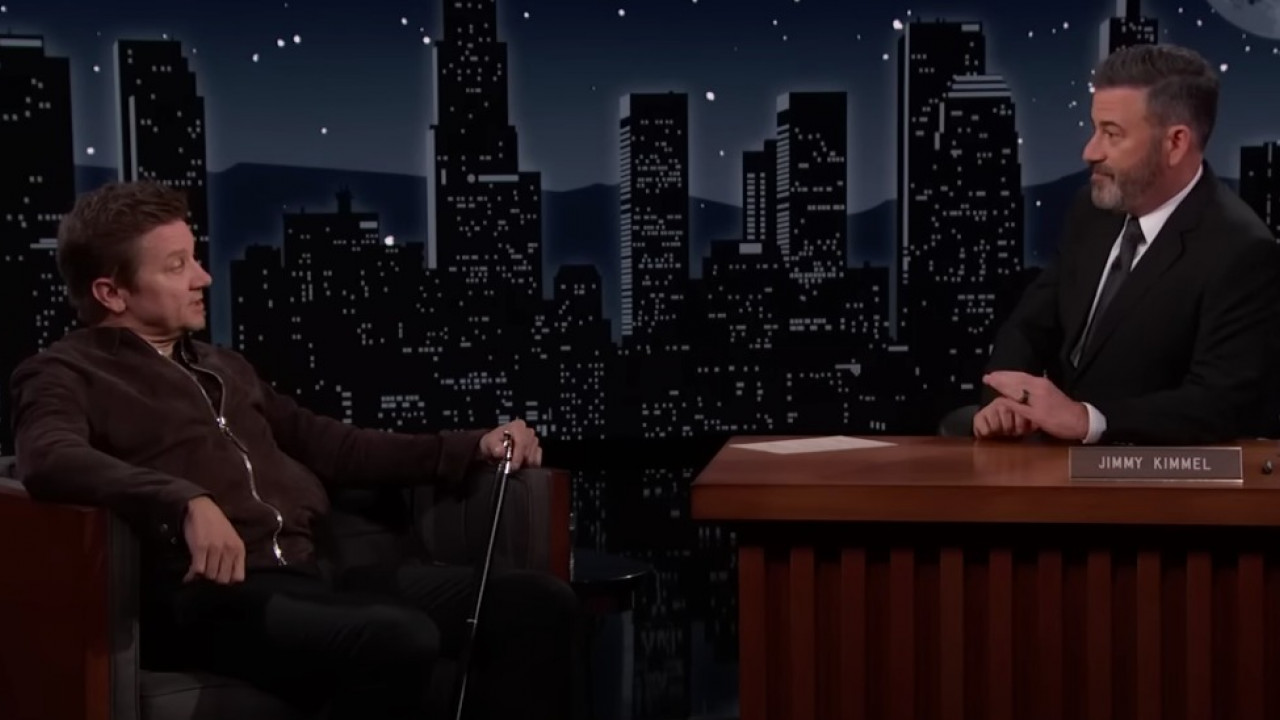 Apoyado en un bastón, Jeremy Renner reapareció en programa estadounidense de entrevistas a más de cuatro meses de sufrir grave accidente con una máquina para quitar nieve en Nevada.