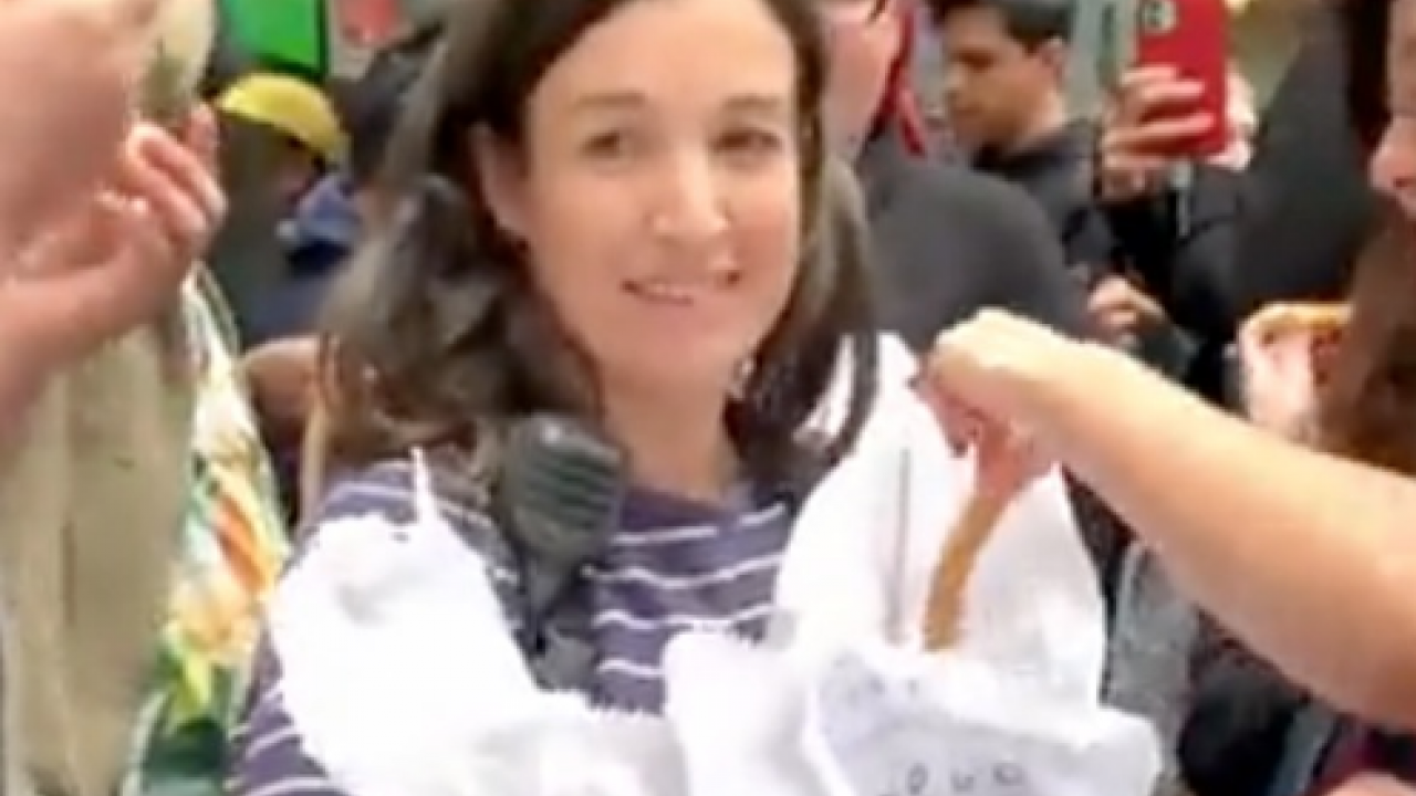 Varios jóvenes llegaron horas antes del show para tener un buen lugar y se sorprendieron al ver a tres mujeres desfilar entre las vallas, para repartirles el crujiente y dulce postre.