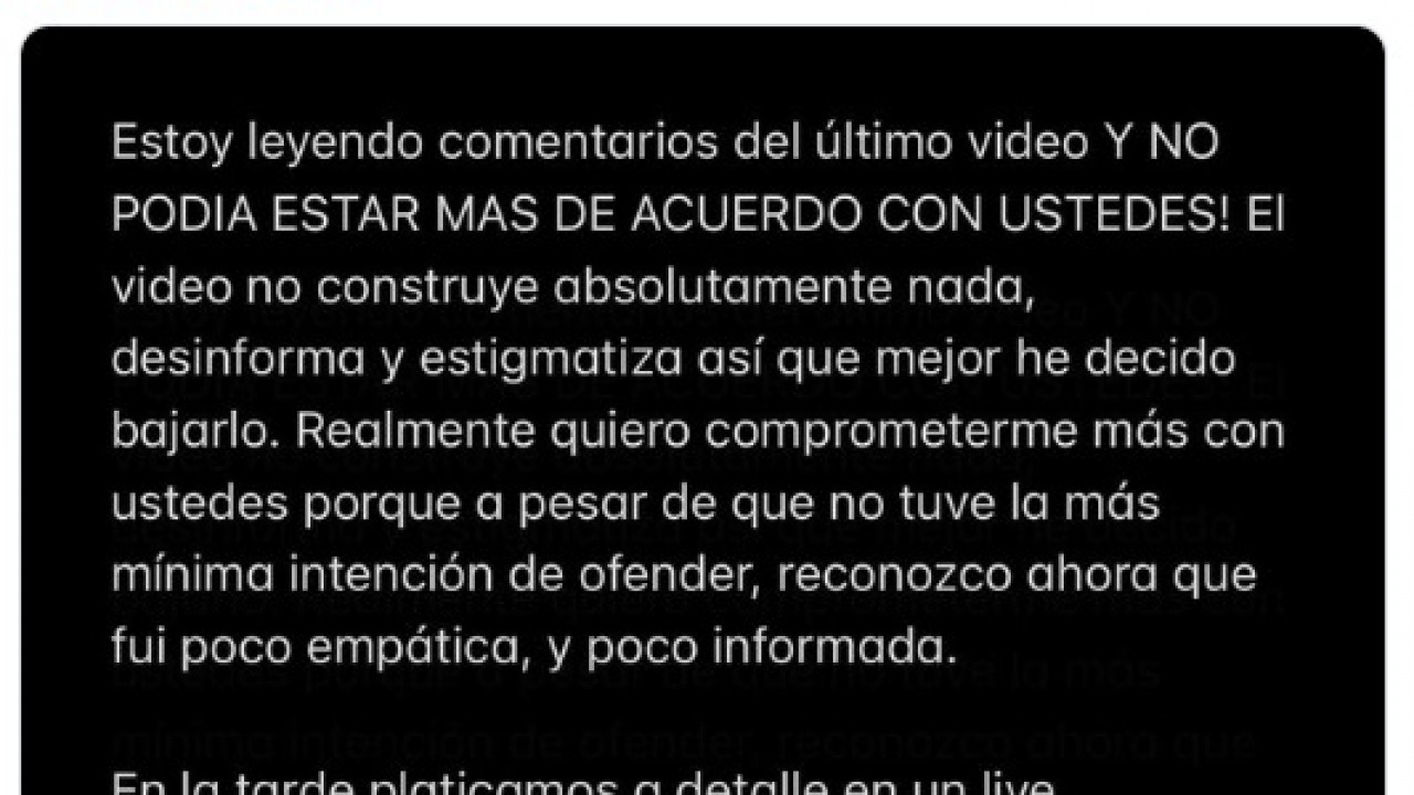 Mane se pronunció en redes y mostró empatía con quienes se dijeron ofendidos: “No podía estar más de acuerdo con ustedes. El video no construye absolutamente nada, desinforma y estigmatiza así que mejor he decidido bajarlo”.