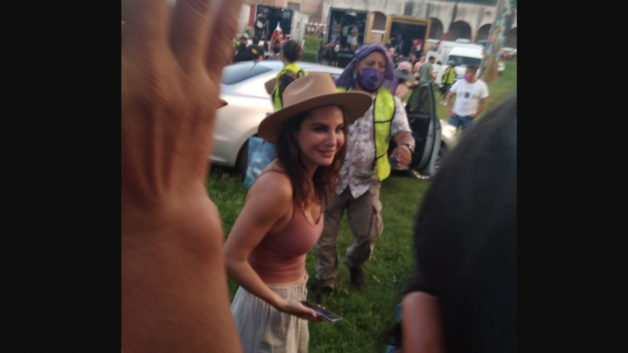 Habitantes compartieron fotografías y videos de la actriz al salir de su cámper, quien aprovechó para saludarlos y en todo momento se mostró amable y sonriente.