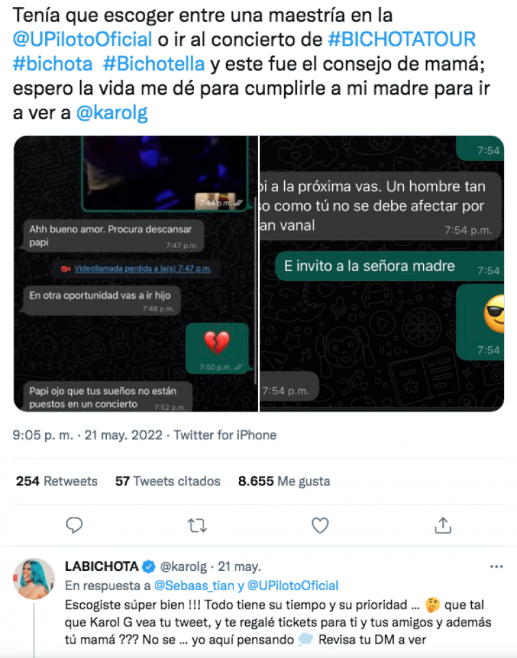 Sebastian, un joven que anhelaba ir al concierto de Karol G, se quedó sorprendido cuando la artista lo contactó para darle boletos gratis.