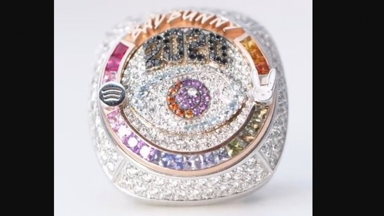 Spotify, plataforma de música streaming, entregó tres anillos de campeón, diseñados por Jason de Beverly Hills, a Bad Bunny por ser el artista mas escuchado por tercer año consecutivo.