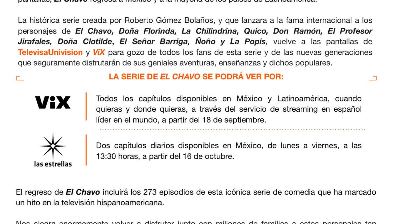 TelevisaUnivison anuncia el regreso de "El Chavo del 8" a las pantallas