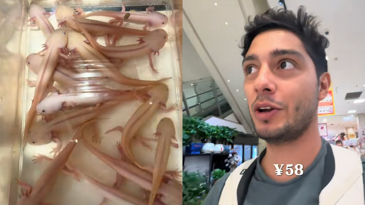 Un creador de contenido se viralizó tras reportar la venta de presuntos ajolotes en China por 58 yuanes, lo que equivale a cerca de 150 pesos mexicanos.