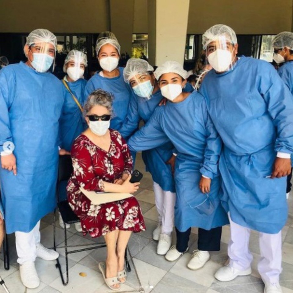 La actriz asistió a un centro de vacunación y aceptó a posar con el personal de salud, tras lo cual se filtraron las fotos.