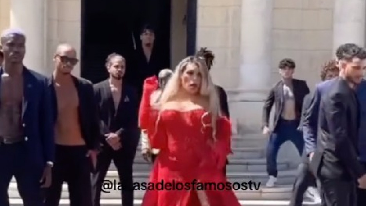 En redes circuló un video en el que se le ve bailando con un despampanante vestido rojo y rodeada de varios hombres, mientras recibe instrucciones de la producción. José Rojas, cineasta cubano es quien dirige el video.