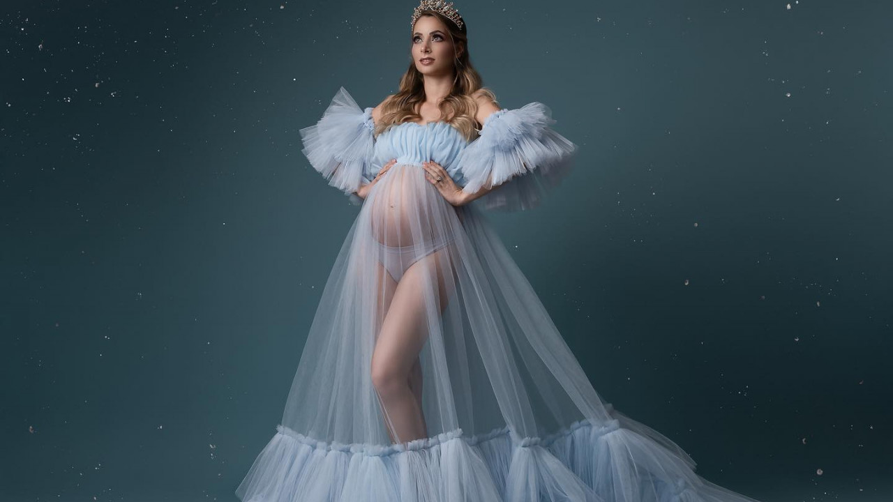 La influencer Yosstop presumió su avanzado embarazo a través de tierna sesión de fotos, en los que luce un vestido transparente de tul y una corona.