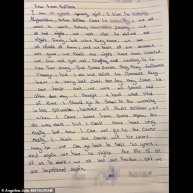 Angelina Jolie comparte carta de niña afgana en Instagram