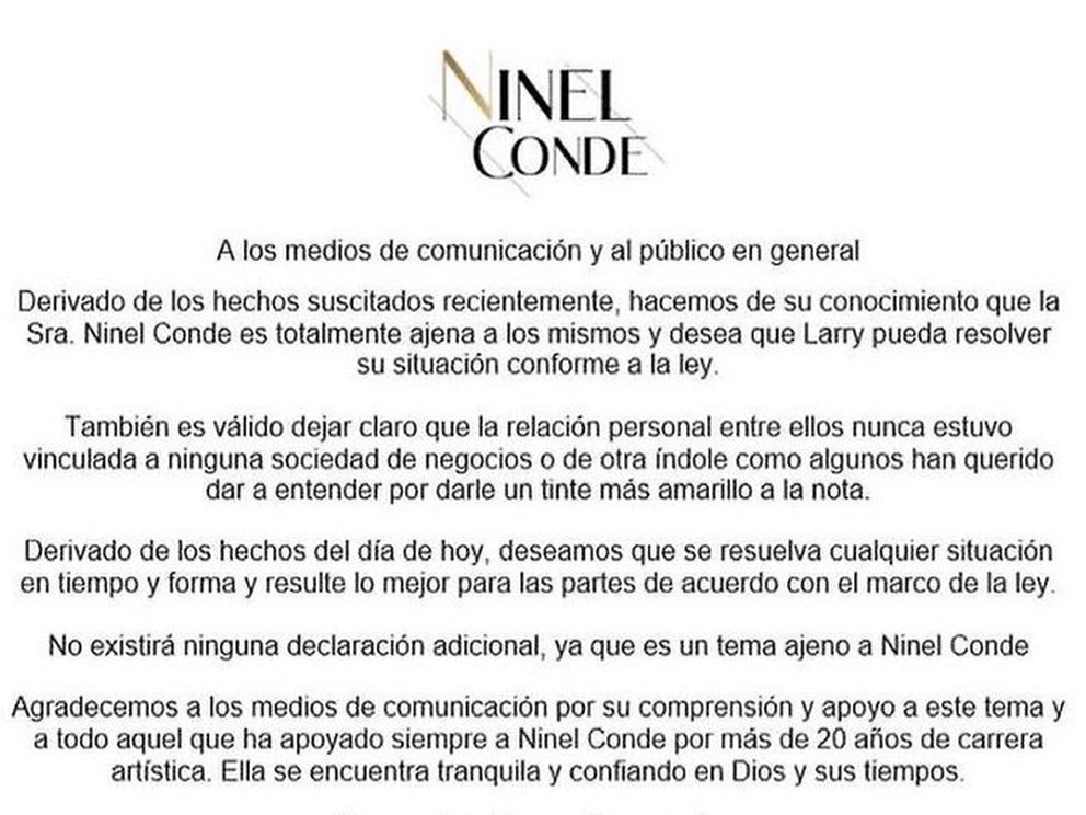 Ninel se deslinda de detención de su esposo Larry Ramos