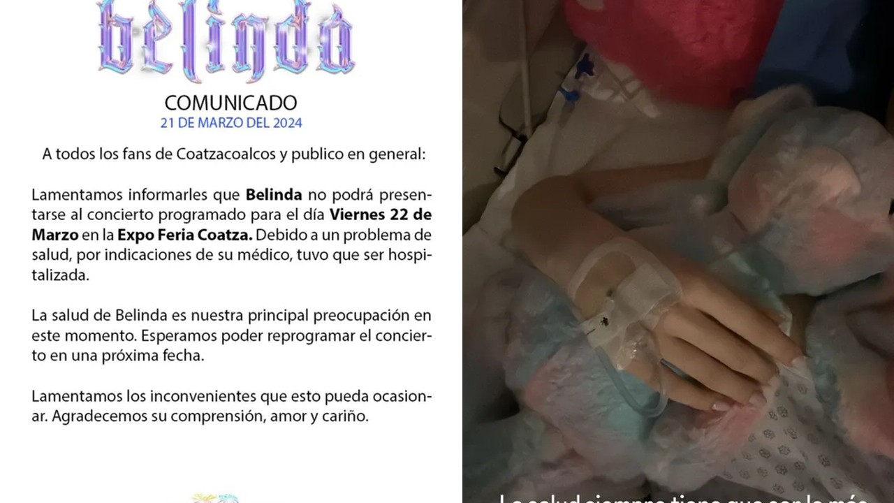 Belinda, hospitalizada: cancela presentación en Veracruz