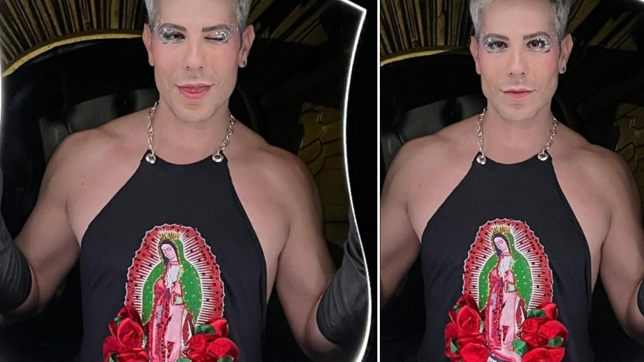 Christian Chávez presume top con imagen de la Virgen