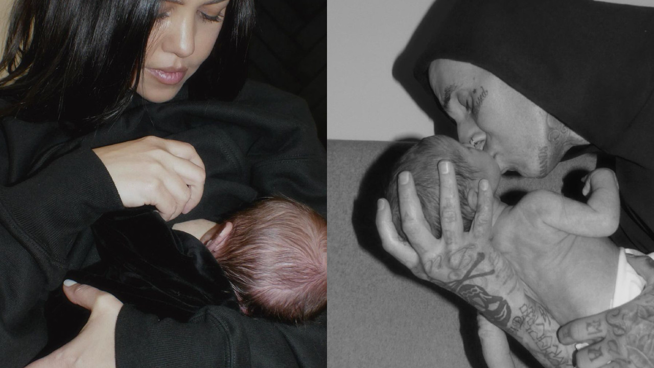 Kourtney Kardashian y Travis Barker presumen a su bebé por primera vez