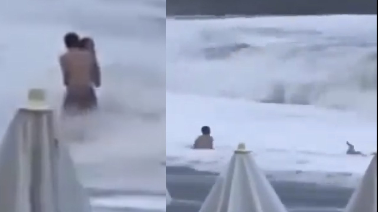 Mar se lleva a mujer pese a esfuerzo de su novio por salvarla