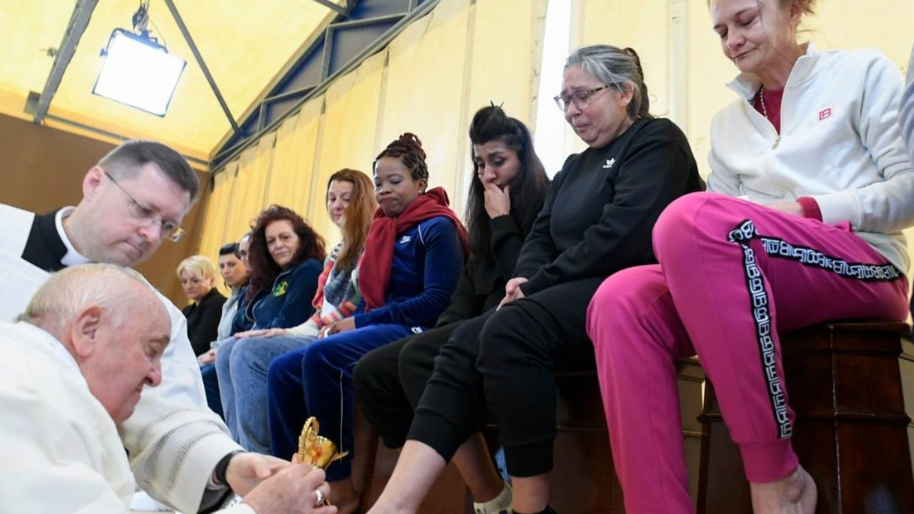 Papa Francisco lava y besa pies a mujeres presas en Roma