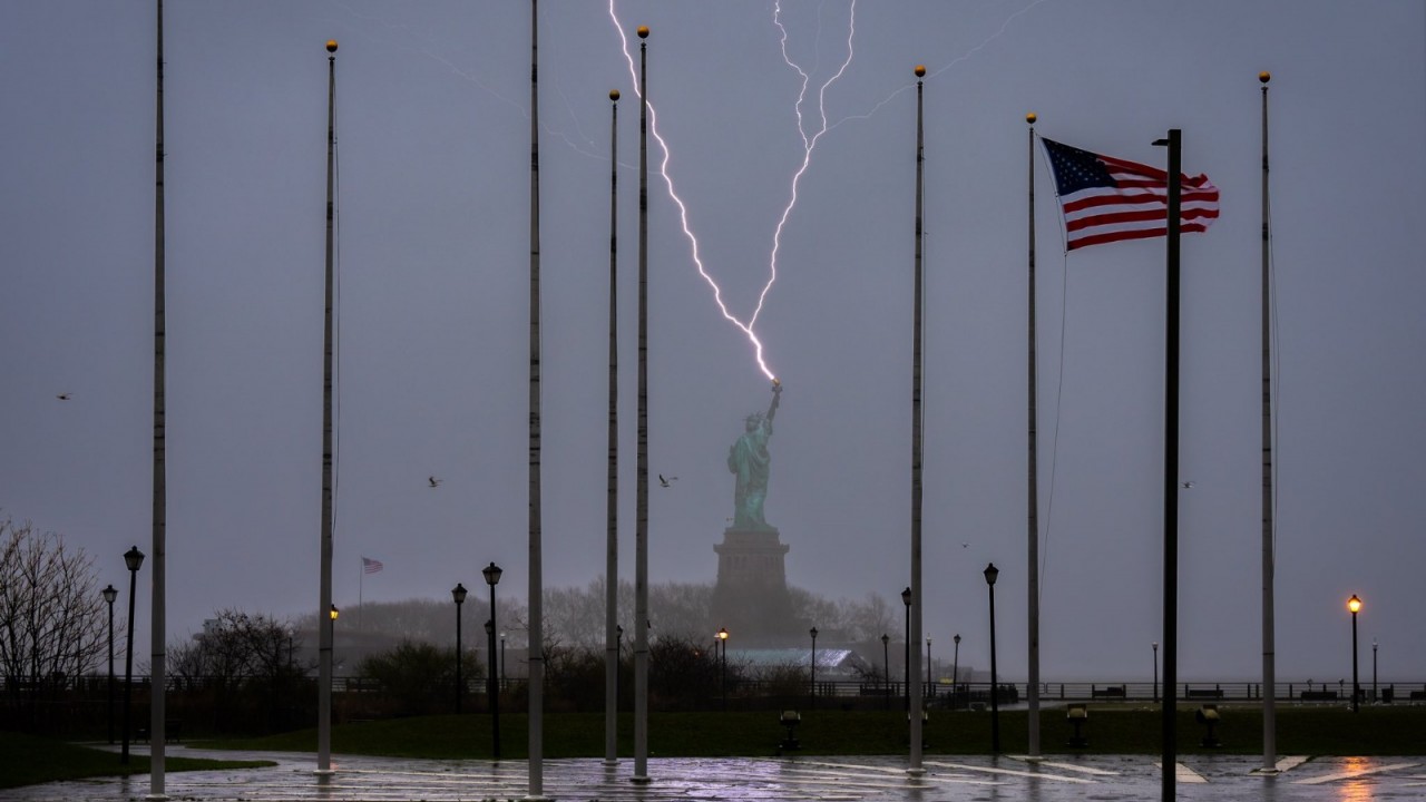 ¡Tremenda postal!: Fotógrafo capta caída de rayo en la Estatua de la Libertad