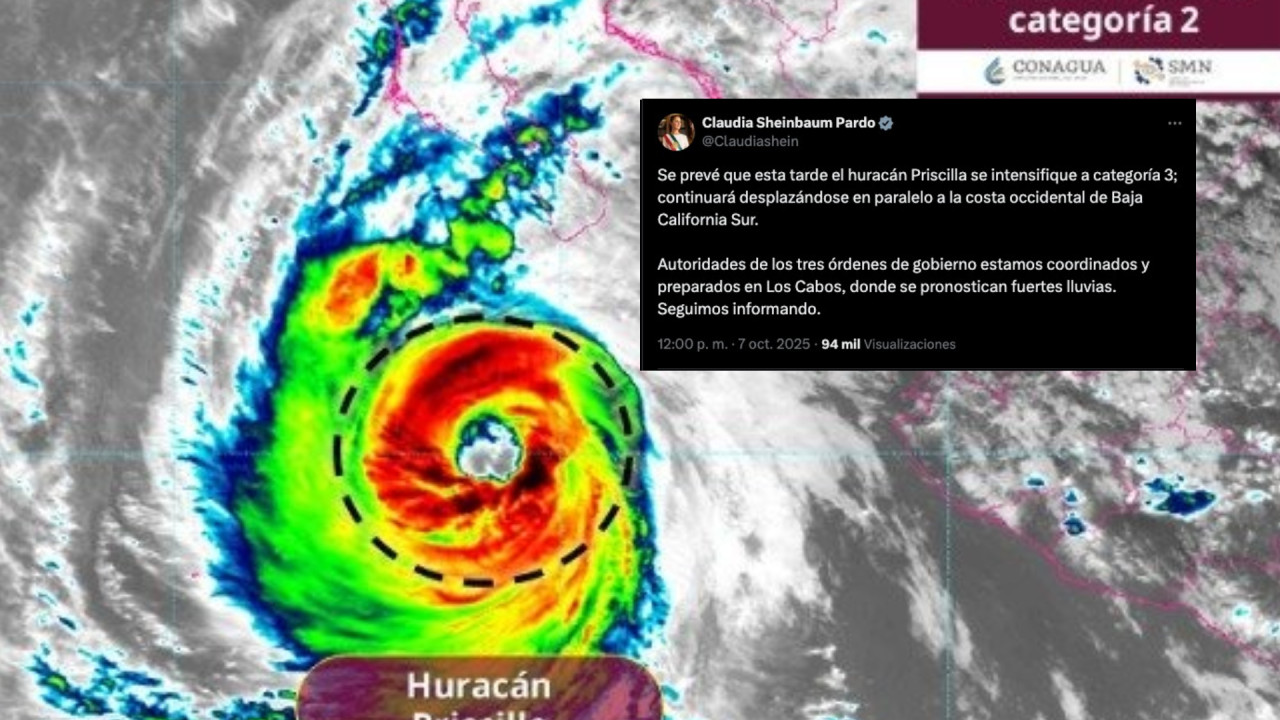 Huracán Priscilla alcanzaría categoría 3: Sheinbaum