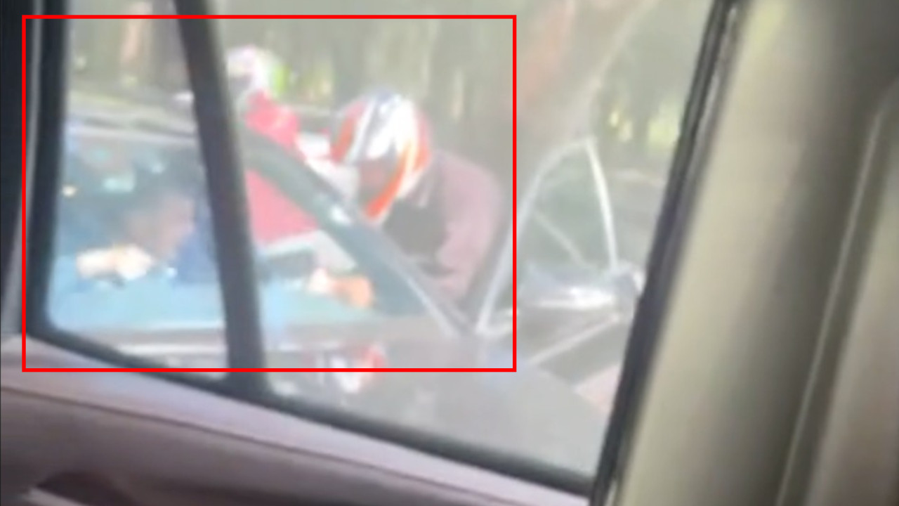 Automovilistas captaron el momento en el que los presuntos responsables amagan con un arma al conductor y, tras un forcejeo, le quitan sus pertenencias y huyen del lugar.