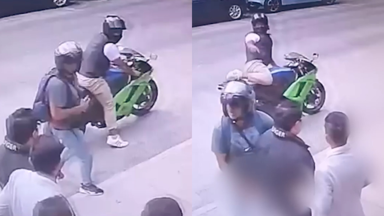 Los hechos quedaron registrados en cámaras de vigilancia, en las que se ve como los presuntos asaltantes amagan a sus víctimas y, en menos de 40 segundos, los despojan de sus pertenencias y huyen del lugar.