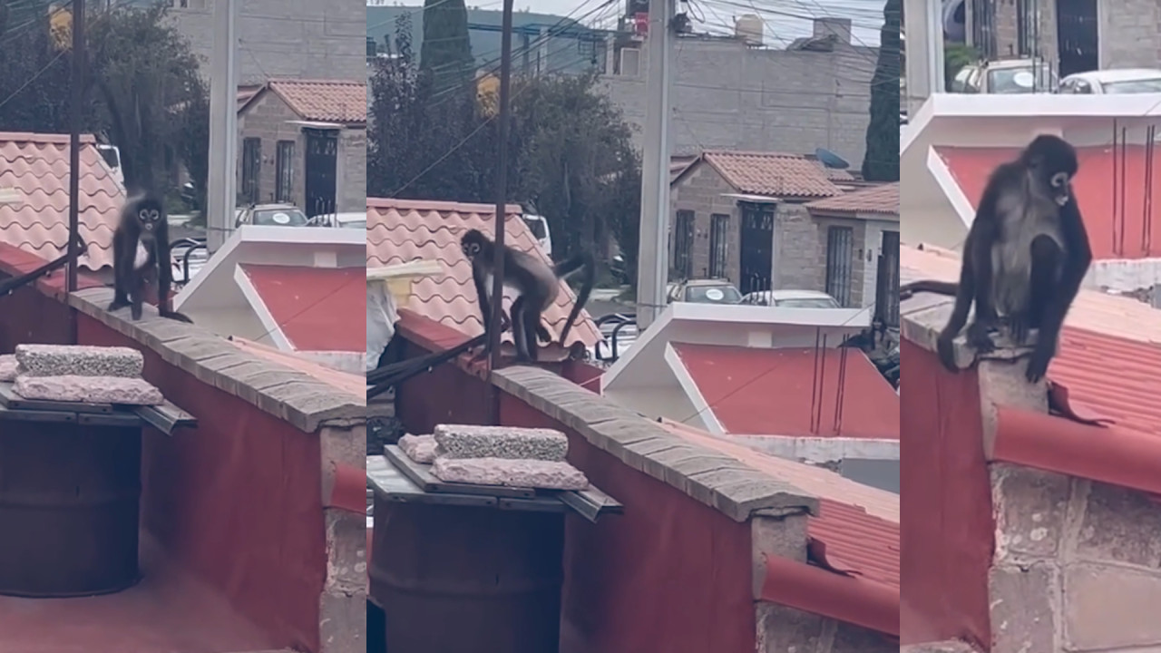 Elementos de emergencias y de Bienestar Animal aseguraron a un mono araña que deambulaba en los techos de una Unidad Habitacional de Chicoloapan, en Edomex.