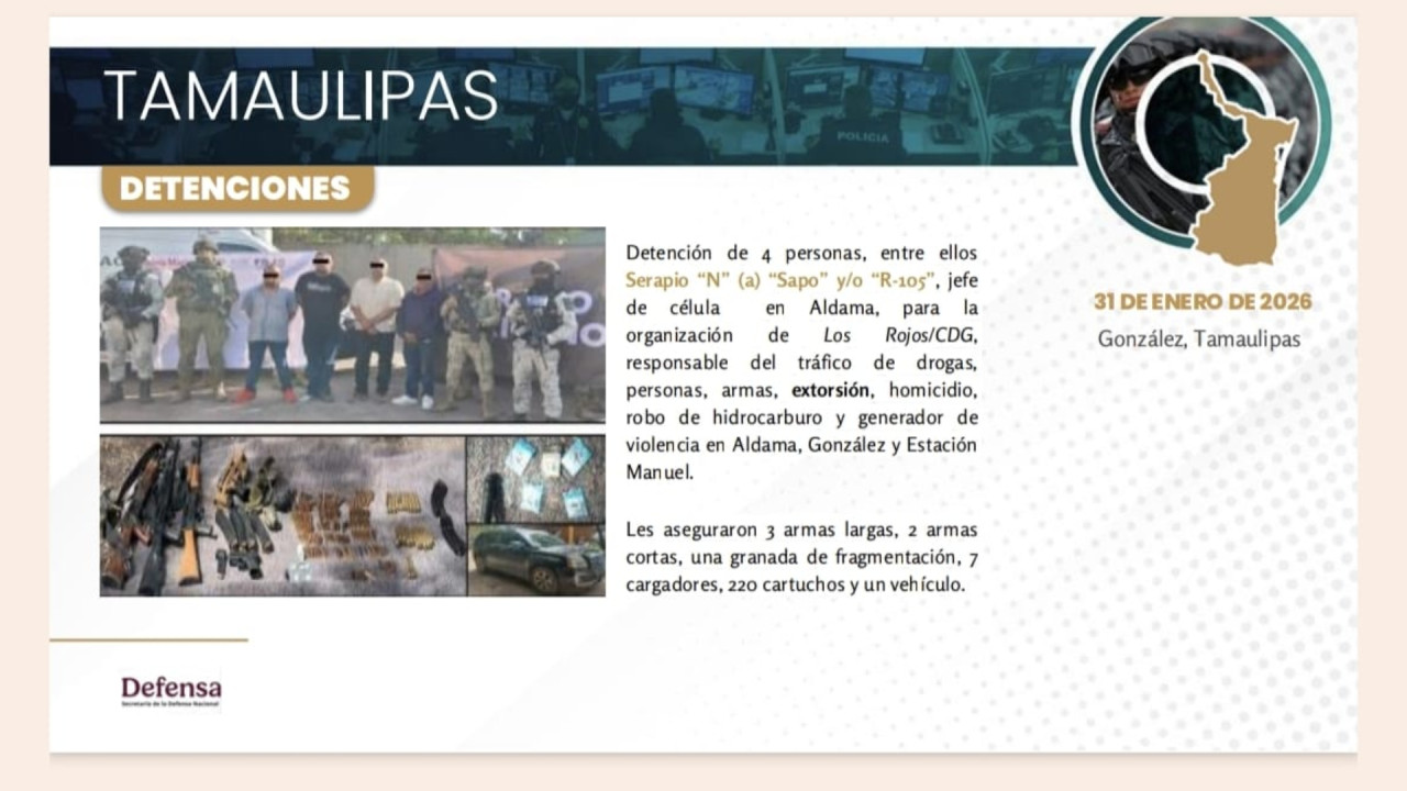 Detienen a jefe de "Los Rojos" en Tamaulipas: informa Harfuch
