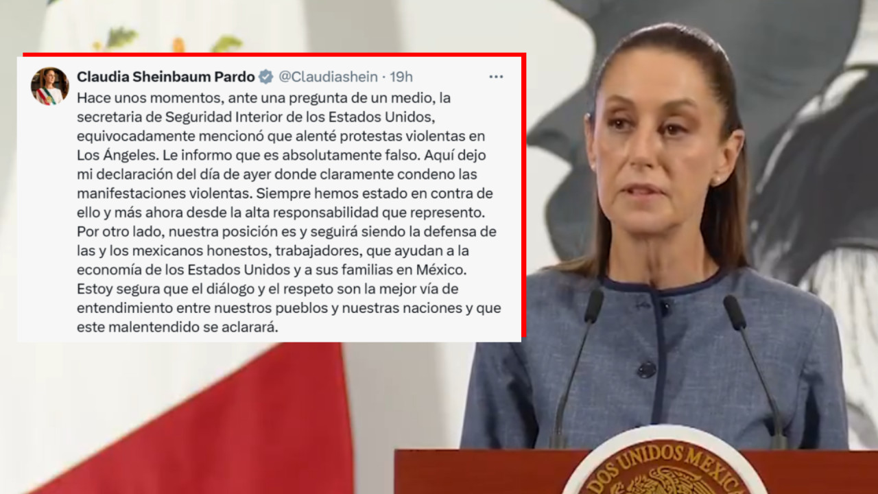 Sheinbaum responde a Kristi Noem; niega alentar protestas en EE.UU.