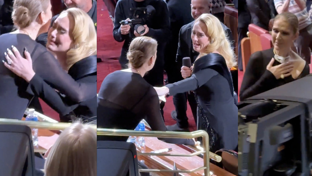 La británica cantaba "Easy on me" cuando vio a Céline y de inmediato corrió a abrazarla mientras lloraba.