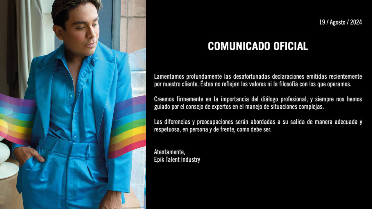 La agencia Epik Talent Industry, que representa a Ricardo Peralta, emitió comunicado en el que lamenta las declaraciones de su cliente.