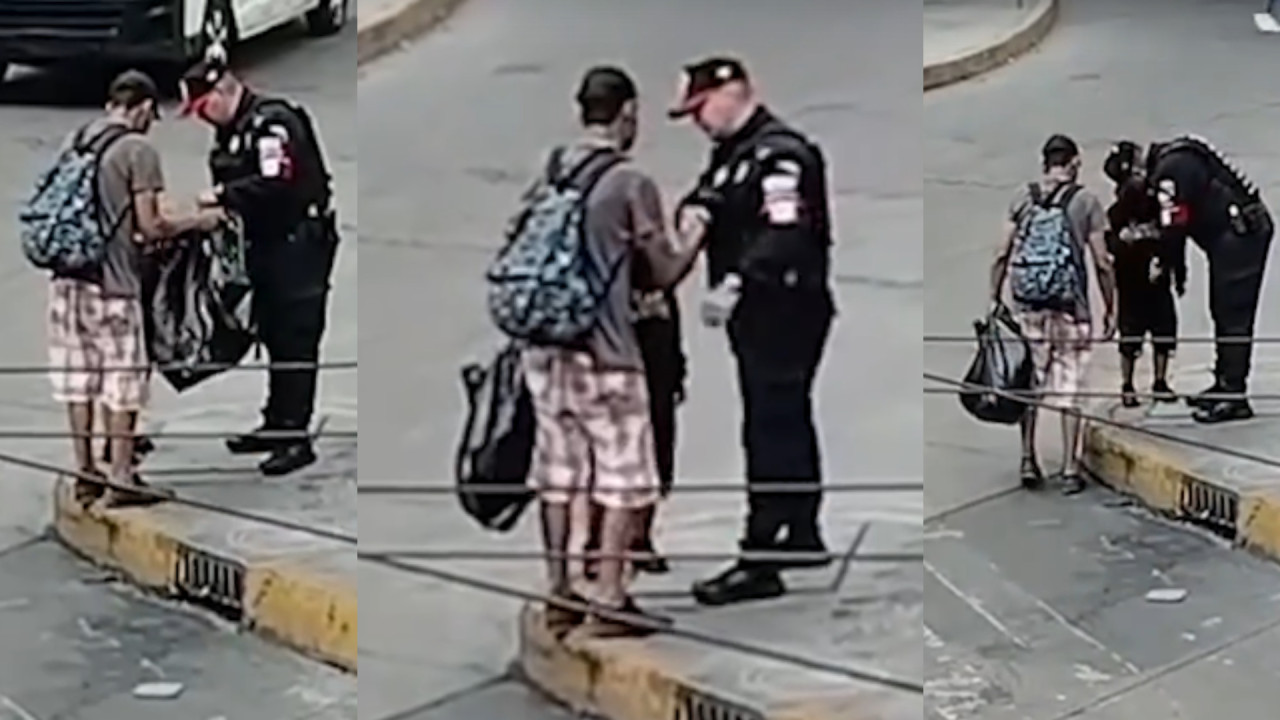Captan a policía regalando mochila a lavautos en CDMX