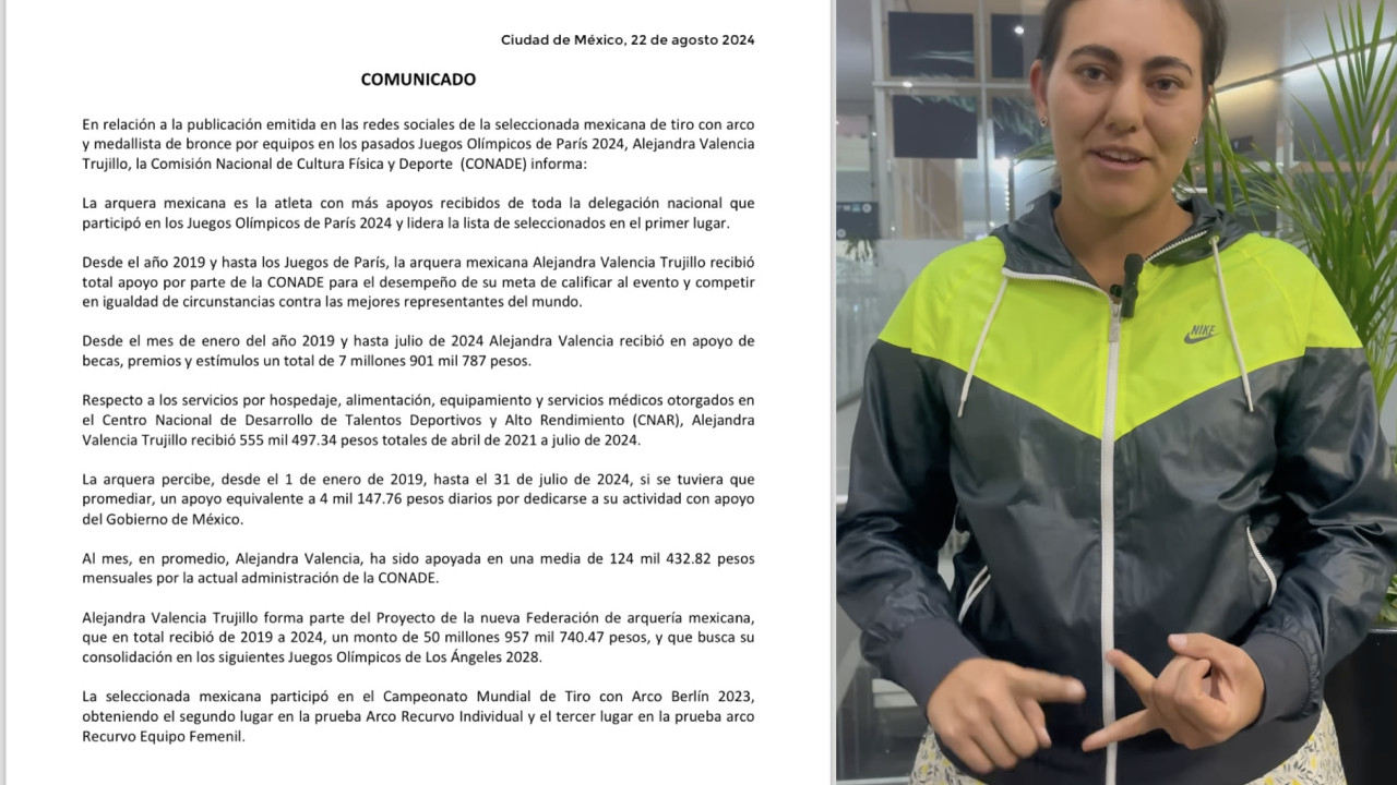 Luego de que Alejandra Valencia denunció la reducción de su beca al regresar como medallista olímpica de los Juegos de París 2024, la Conade la exhibió como “la atleta con más apoyos recibidos de toda la delegación nacional”.