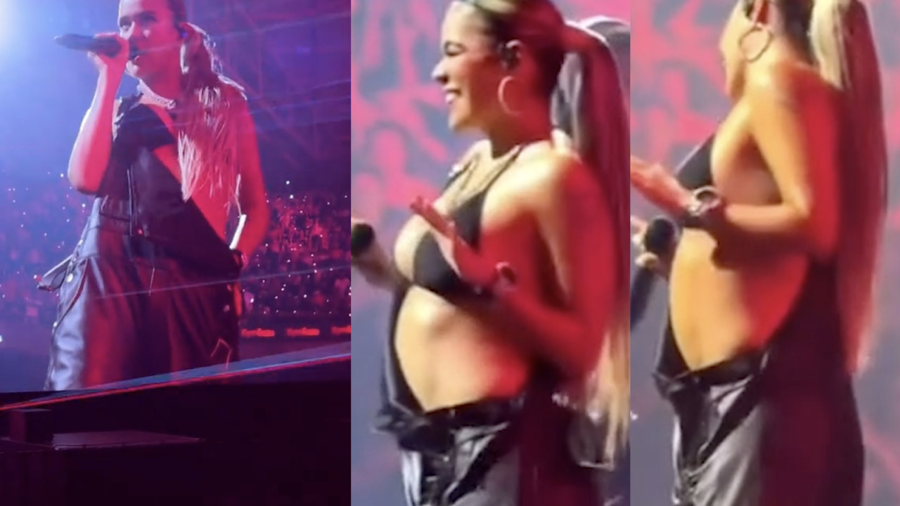 Karol G desató sospechas de embarazo luego de dejarse ver sorpresivamente en un concierto junto a su pareja, Feid, en Medellín, con un overol olgado que le cubría el abdomen.