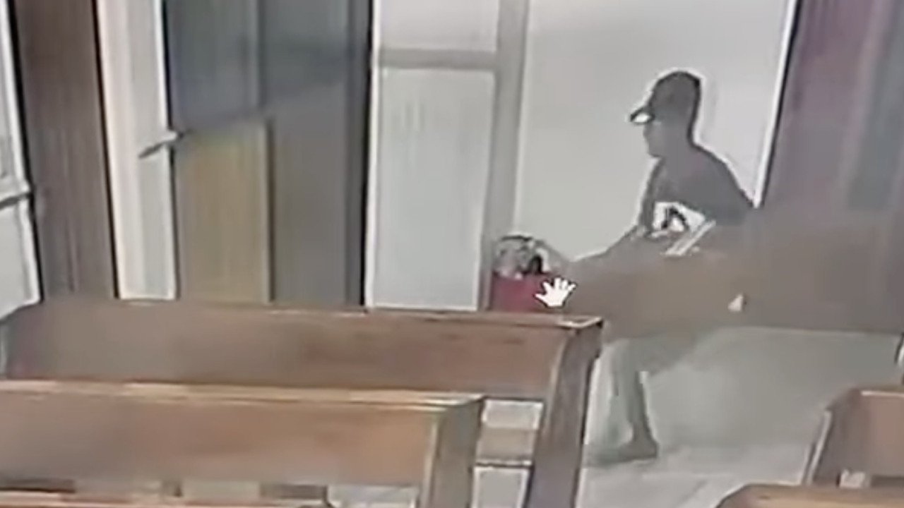 Cámara de seguridad del recinto religioso captó cómo los sujetos hurtan la alcancía de San Judas Tadeo; uno de los responsables sería una persona en situación vulnerable y estaría bajo el influjo de sustancias.