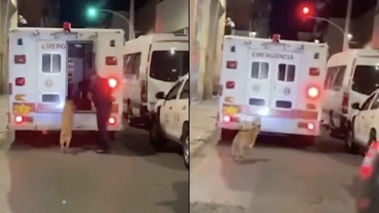 Perrito persigue ambulancia que traslada a su dueño