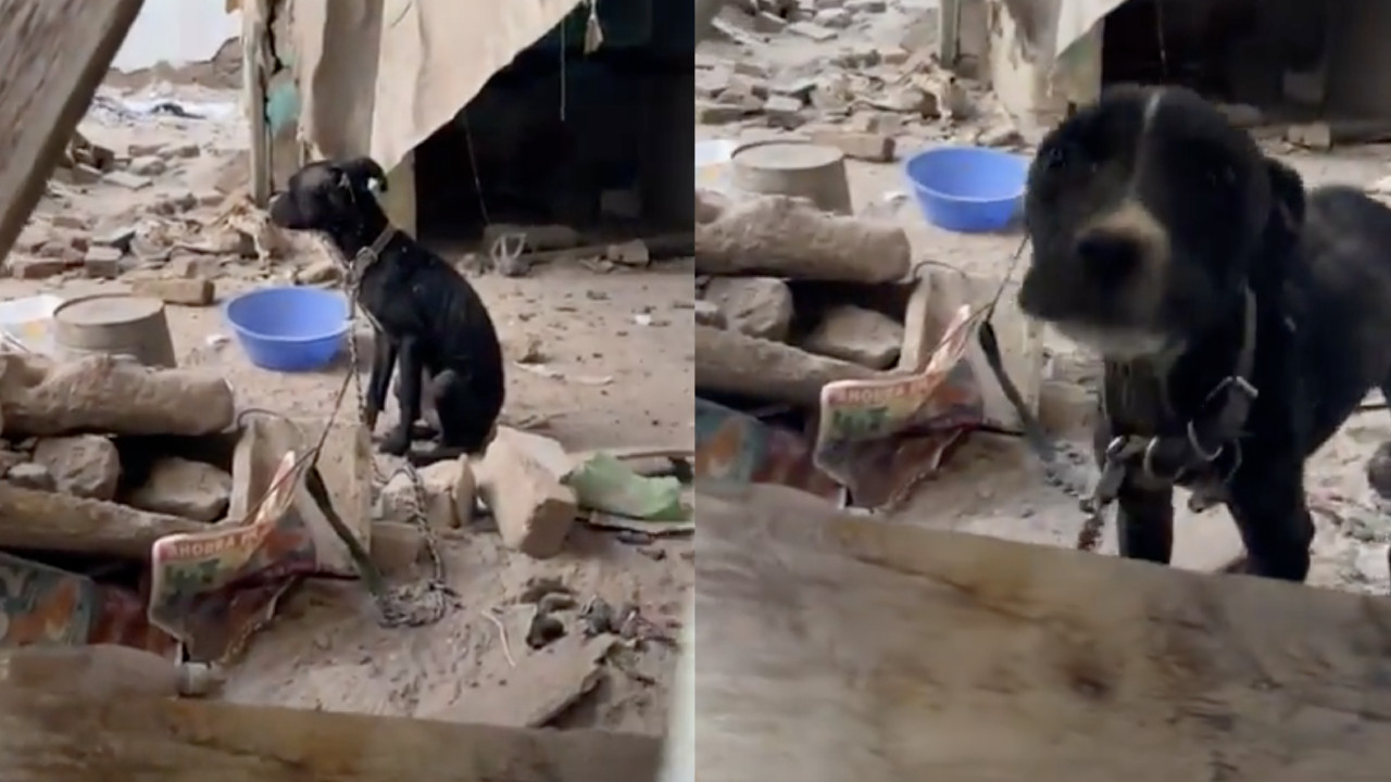 Esto, después de una denuncia ciudadana a través de un video en el que se ve al peludito alegre de ver a un humano, pese a su desnutrición y sus platos vacíos de agua y comida.