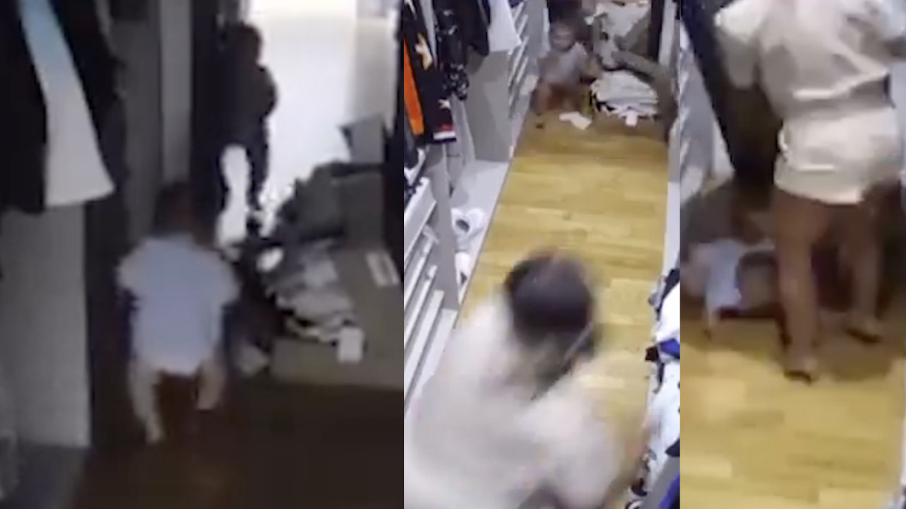 La misma modelo compartió el video en redes en el que se ve que, explorando el vestidor, el pequeño se acerca al espejo, que no está fijo, y lo mueve, provocando que caiga.