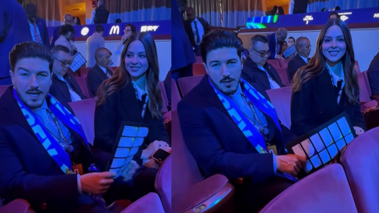 Samuel García en sorteo de FIFA junto a Mariana