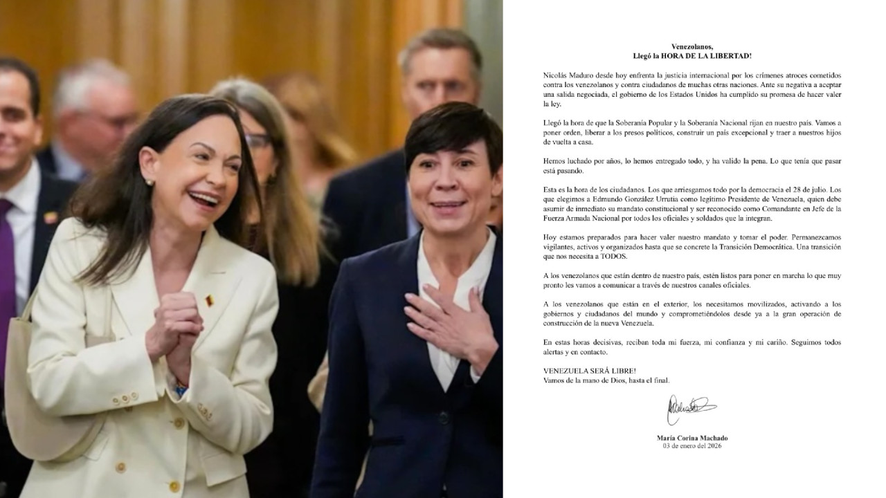 "Venezuela será libre": María Corina aplaude captura de Maduro