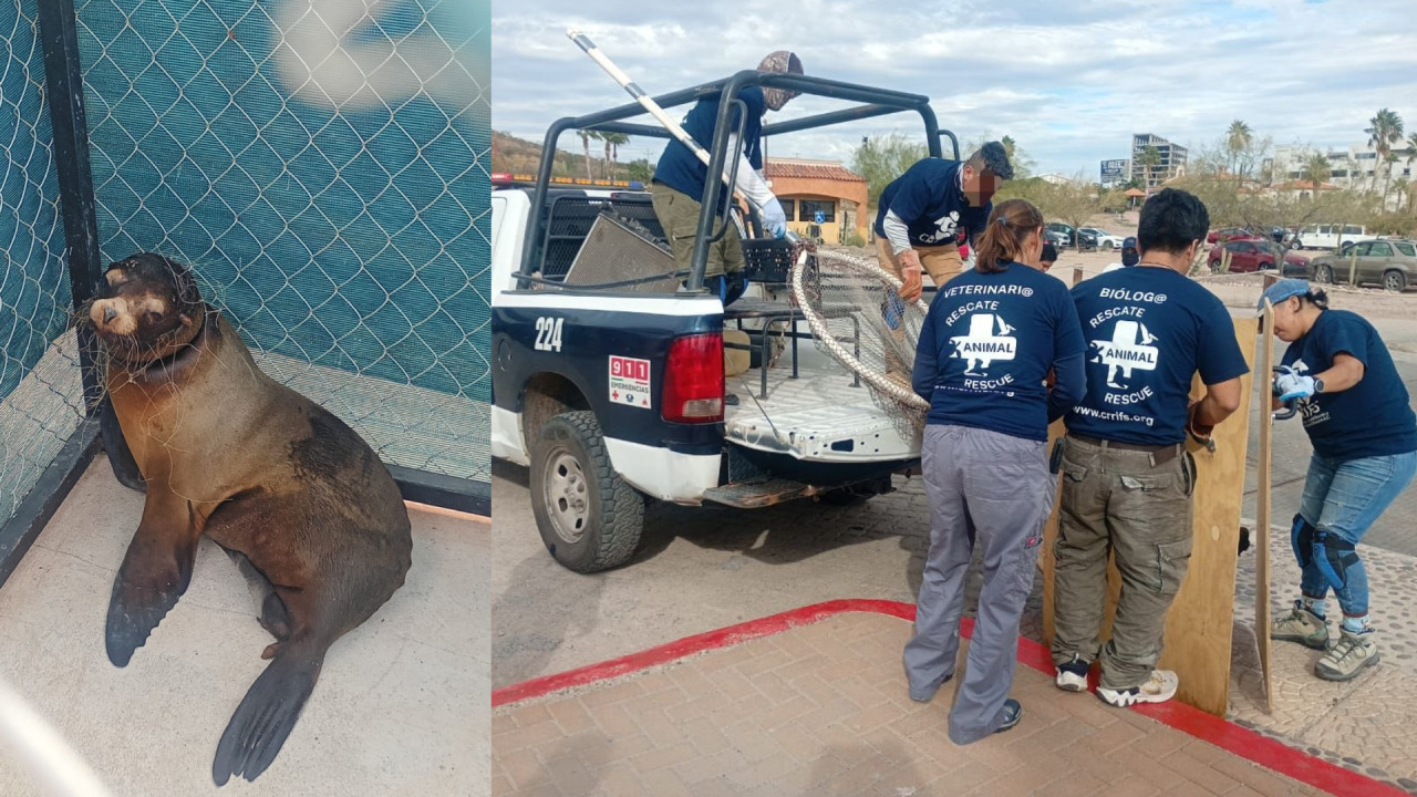 Rescatan a lobo marino que estaba atrapado en una red en Sonora